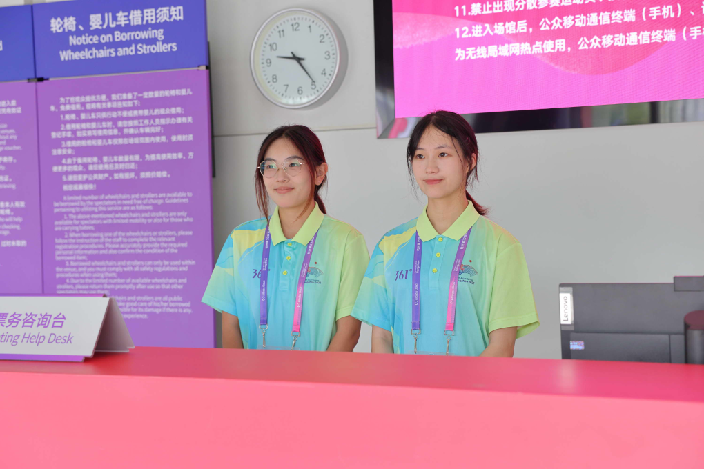 临安体育文化会展中心体育馆是跆拳道、摔跤等比赛项目的举办场地。陈诗蔚表示:“能够近距离见证荣耀时刻,我感觉无比荣耀和自豪。这次经历在提高我们服务水平的同时,也激发了我们更多参与体育活动的热情。”