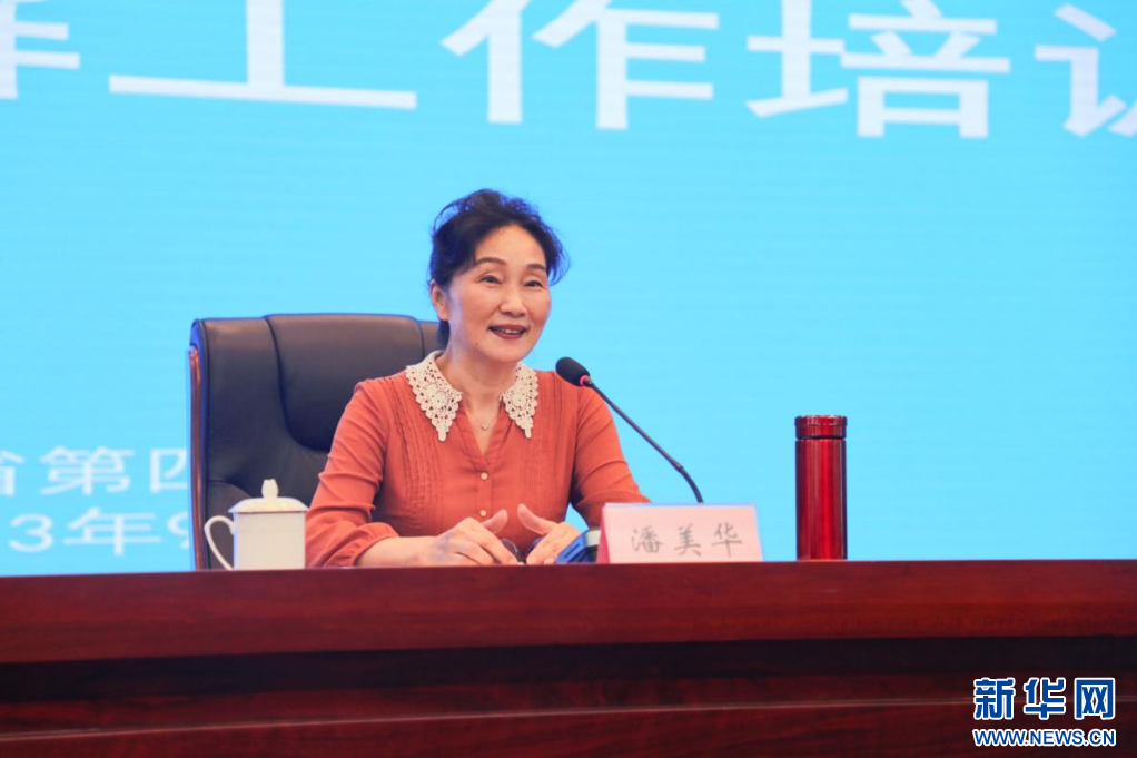 潘美华在调解培训会上为基层调解员传授调解技巧、分享调解心得。新华网发