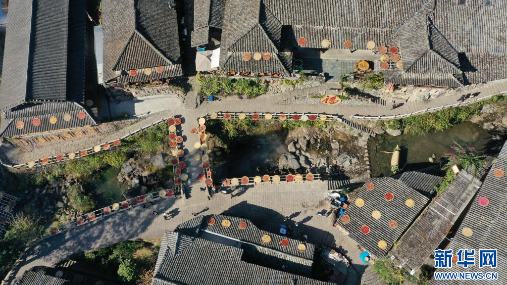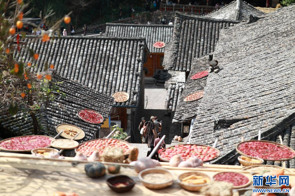 林坑村五彩斑斓的晒秋场景。新华网发