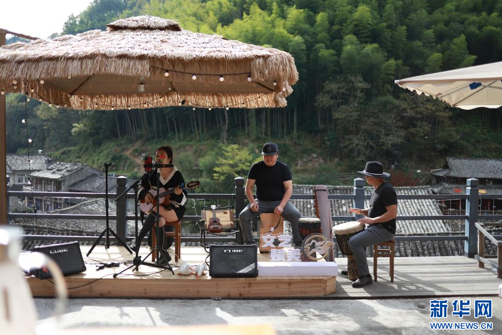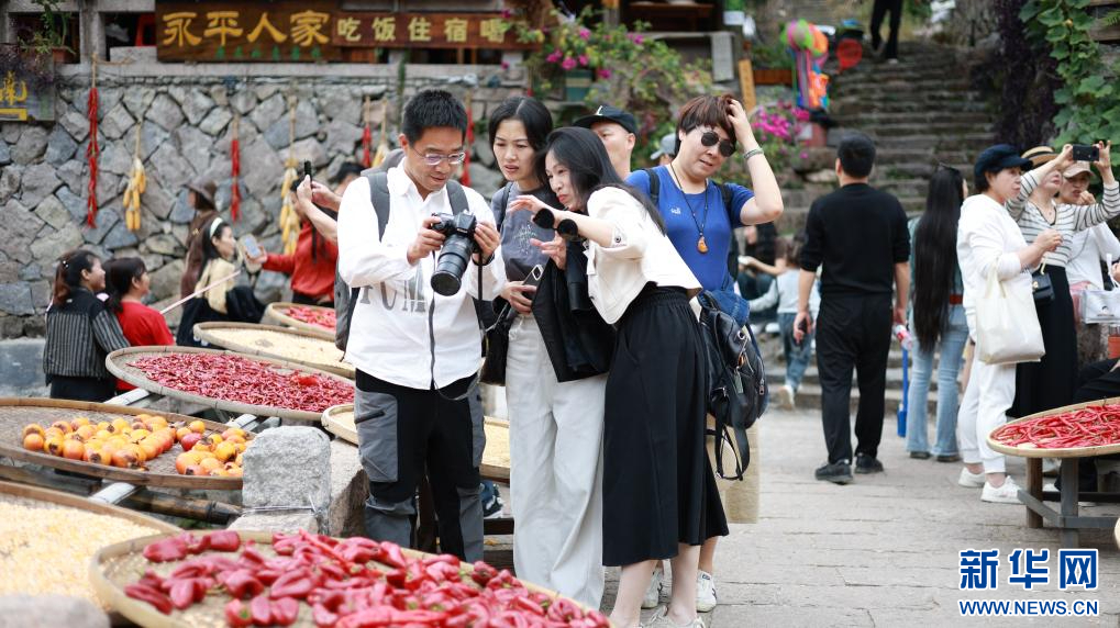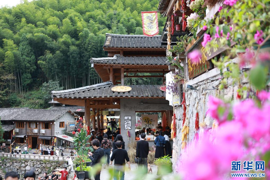 游客在林坑村打卡拍照。新华网发
