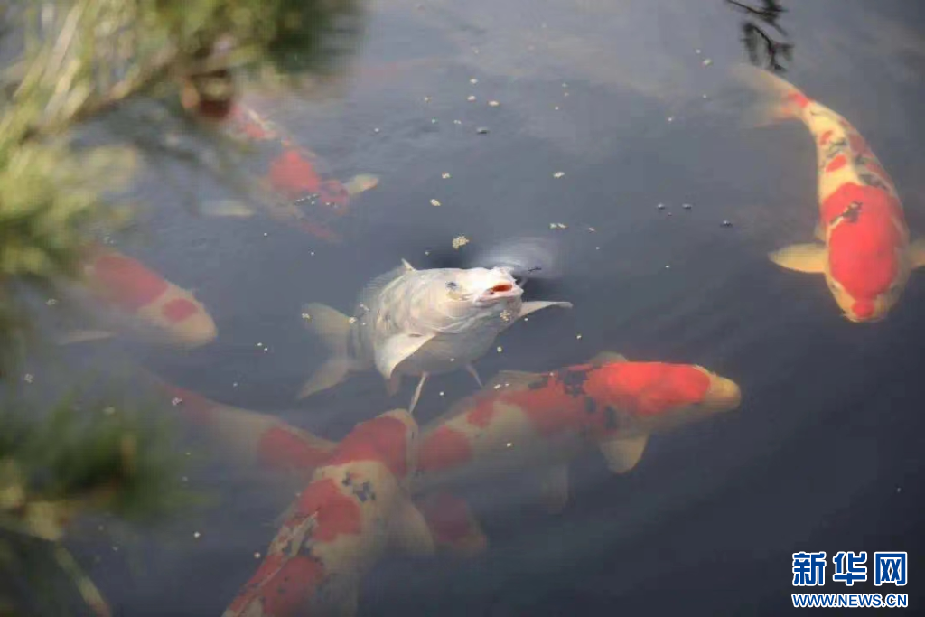 洪合镇生态农场里的锦鲤。新华网发嘉兴市秀洲区洪合镇人民政府供图