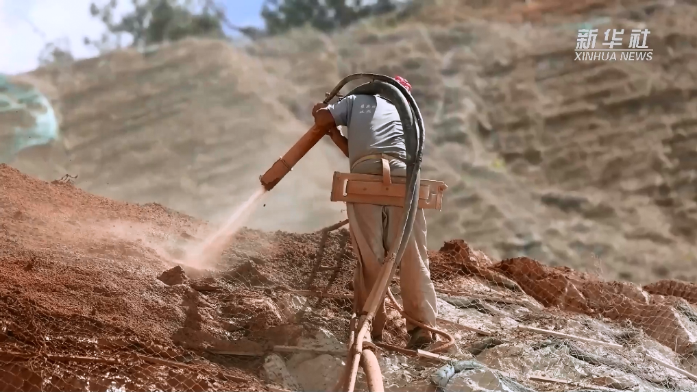 烈日当头,矿山覆绿喷播工人在百米高的岩壁上来回奔走,用辛勤的劳动和汗水为矿山喷洒最美的颜色。