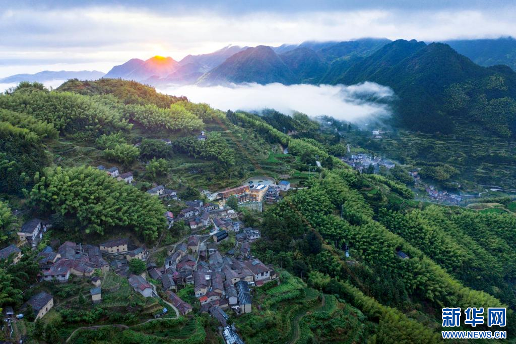 松阳县大东坝镇石仓村云雾缭绕,宛若仙境。新华网发 松阳县委宣传部供图