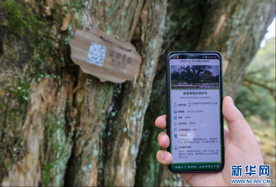 工作人员扫描古树溯源码查看情况。新华网发 张灵杰 摄