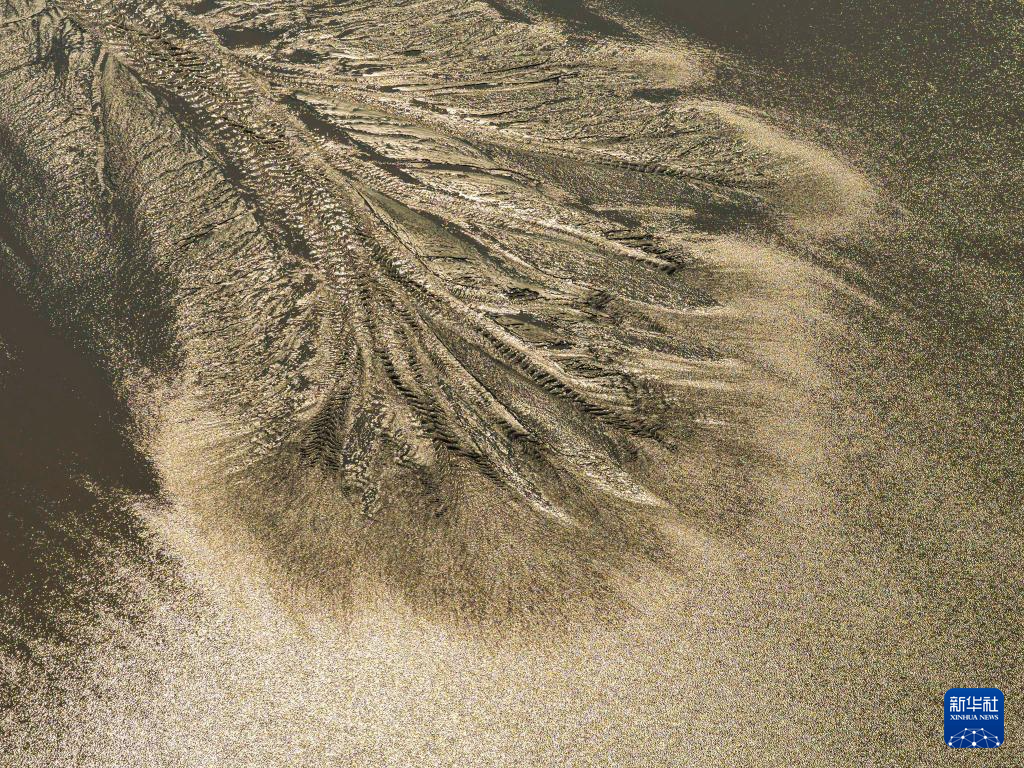 这是10月11日在浙江嘉兴海宁拍摄的钱塘江退潮后的“潮汐树”(无人机照片)。