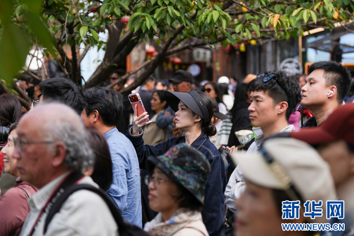 10月24日,游客在新市古镇观看舞蹈表演。
