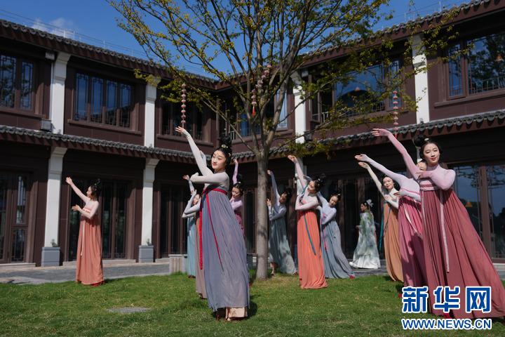 10月24日,浙江歌舞剧院演员在新市古镇表演舞蹈《鹿鸣宴》。