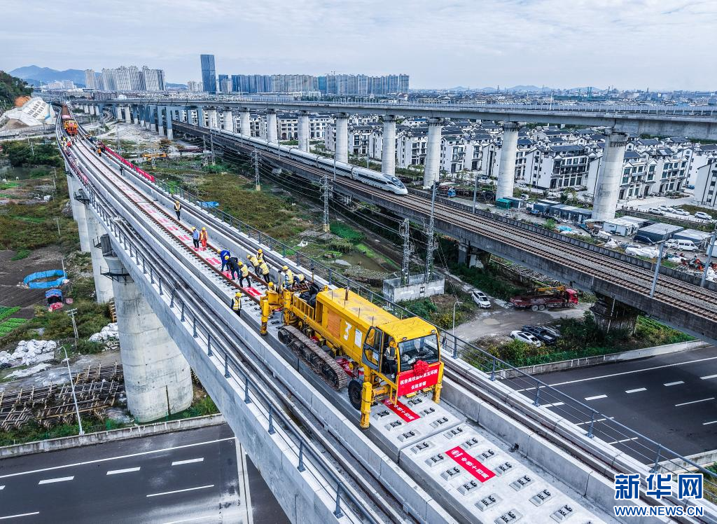 11月5日,杭台高铁温岭至玉环段正式启动铺轨作业,项目从土建施工阶段全面转入轨道工程建设阶段。
