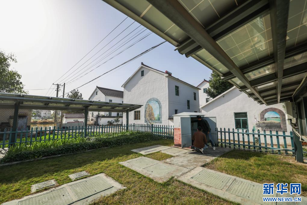 11月25日,工作人员在巡查和平镇长城村生活污水处理设施,该设施用太阳能光伏设备收集的电能处理生活污水。