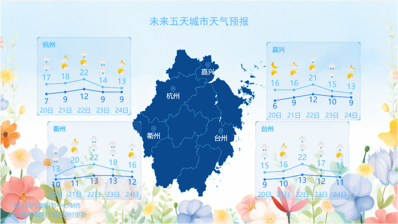 好在,这个周末雨水有所收缩,其中浙北地区以多云到阴为主,浙中南地区多阵雨天气。伴随暖湿气流的增强,气温也将稳步攀升,全省多地最高气温将升至近期高点,部分地区可达25℃,暖意持续回归。