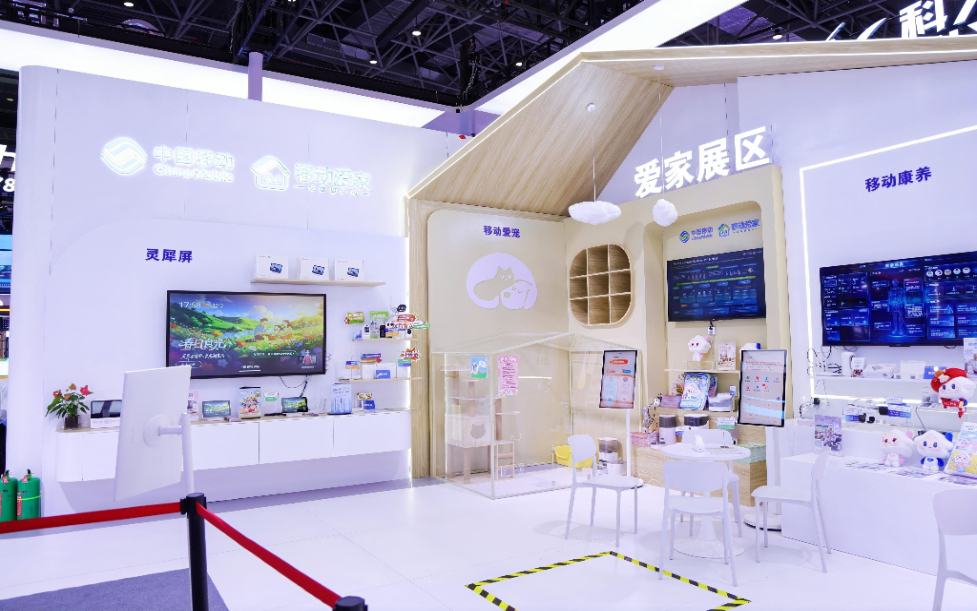 近日,第六届中国国际消费品博览会(以下简称消博会)在海南开幕。中国移动以“数智AI+生活”为主题,携“移动爱家”品牌亮相本届消博会,在1号馆1B06展位打造约200平方米的沉浸式展示空间,集中展示灵犀机器人、移动云电脑、灵犀屏、移动康养、移动爱宠等全场景智慧家庭解决方案。