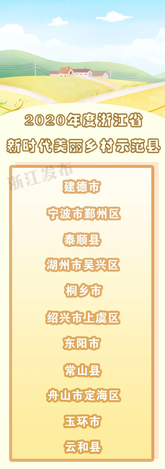 16日下午,浙江召開(kāi)全省深化“千萬(wàn)工程”建設(shè)新時(shí)代美麗鄉(xiāng)村現(xiàn)場(chǎng)會(huì)。會(huì)上宣讀了《中共浙江省委辦公廳浙江省人民政府辦公廳關(guān)于命名2020年度浙江省新時(shí)代美麗鄉(xiāng)村示范縣的通知》,并對(duì)入選的11個(gè)示范縣(市、區(qū))進(jìn)行了授牌,快來(lái)看看有你家鄉(xiāng)嗎?