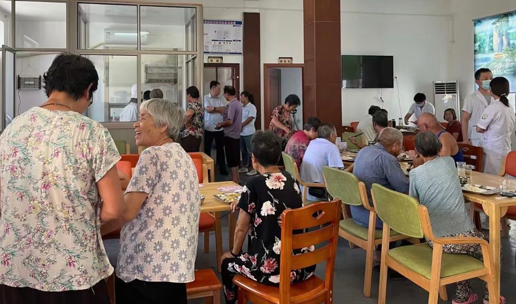 浙江省紹興市一家民營養(yǎng)老服務(wù)機(jī)構(gòu)內(nèi),老人們?cè)谟貌?。受訪者供圖
