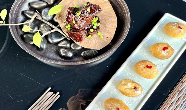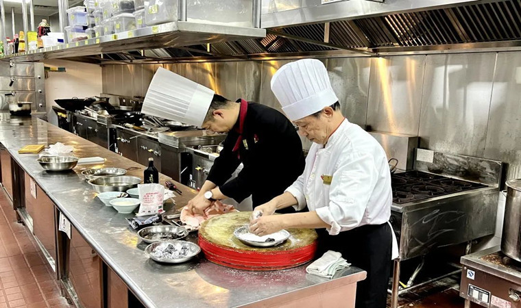 朱偉一邊備菜,一邊向記者介紹:“在烹制牛肉時(shí),我們要加入桐鄉(xiāng)本地的‘烏酒’和包裹粽子的‘箬竹葉’,這樣烹制出來(lái)的牛肉,肉香醇厚,食者唇齒間酒香、粽香縈繞,是一道具有獨(dú)特烙印的桐鄉(xiāng)美食?!庇浾吡私獾?,除了粽香烏酒小牛肉,還有許多桐鄉(xiāng)特色美食也出現(xiàn)在菜單中——紅燒老鵝、富貴燜喜蛋、羊肉面、定勝糕、桐鄉(xiāng)爆魚(yú)……