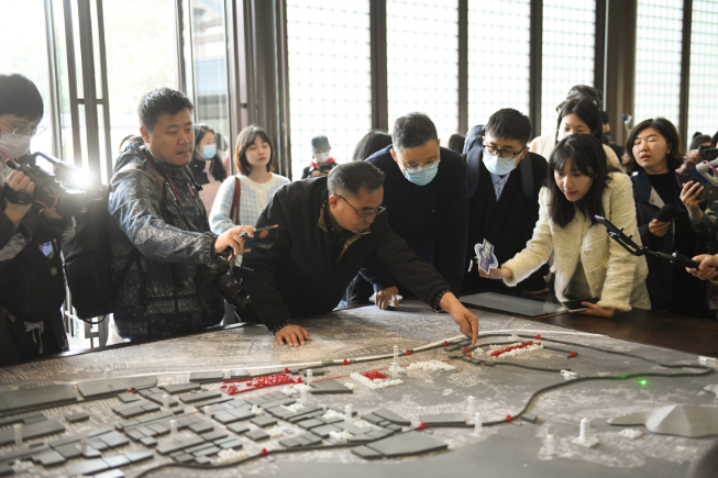 11月14日,專家向媒體記者介紹南宋臨安城布局。新華社記者 翁忻旸 攝