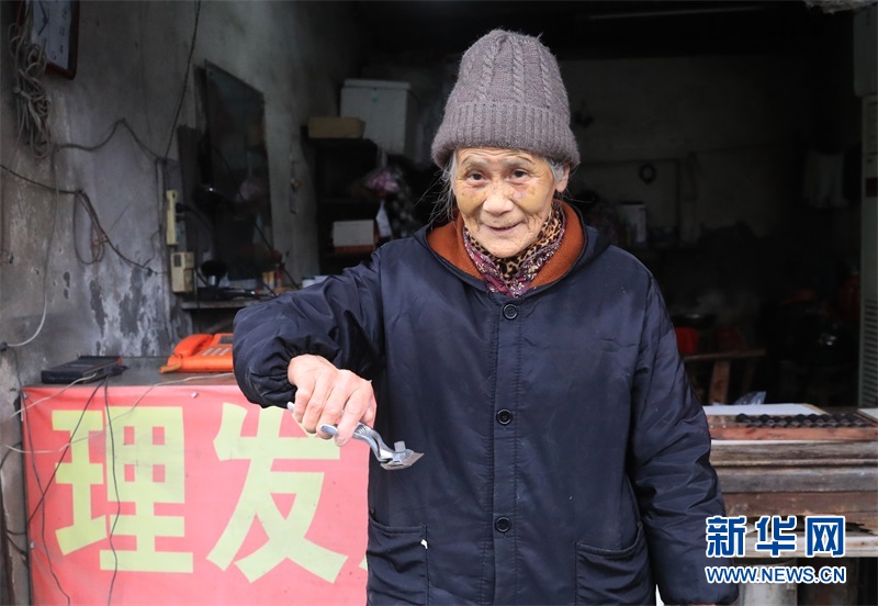 浙江省杭州市蕭山區(qū)瓜瀝鎮(zhèn)靖一村,有一間20平米左右的老屋,門口立著“理發(fā)店”的牌子。81歲的陳蓉英是這家理發(fā)店的主人。