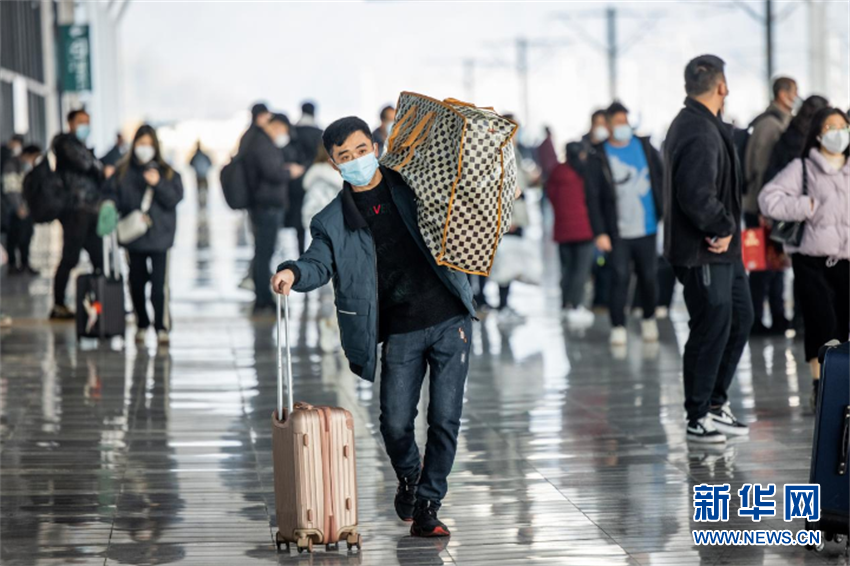 1月7日,在鐵路臺州西站,絡繹不絕的旅客拉著行李箱、拎著大包小包,踏上幸福回家路。新華網(wǎng)發(fā)