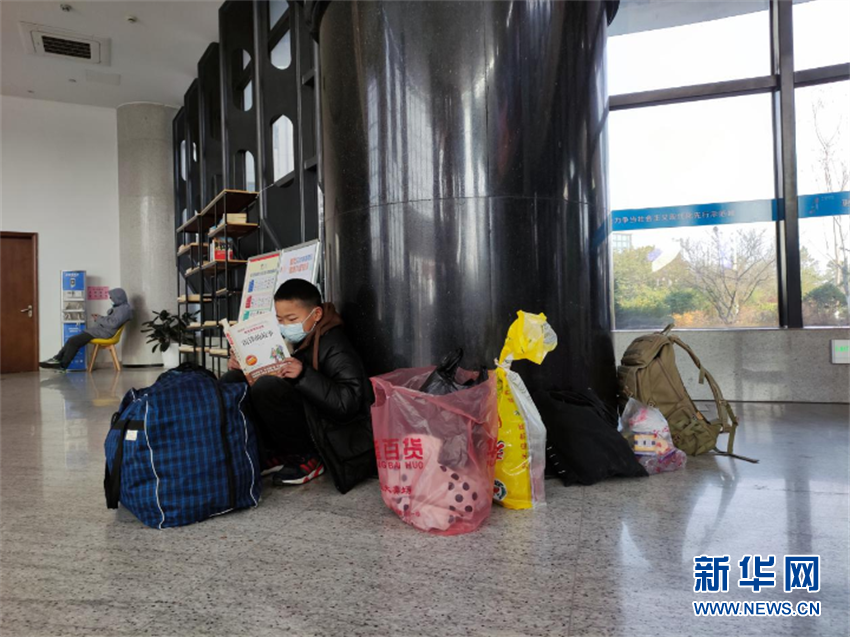 春運首日,在湖州市安吉縣客運中心,一位小朋友在候車室內(nèi)閱讀兒童書籍。新華網(wǎng)發(fā)