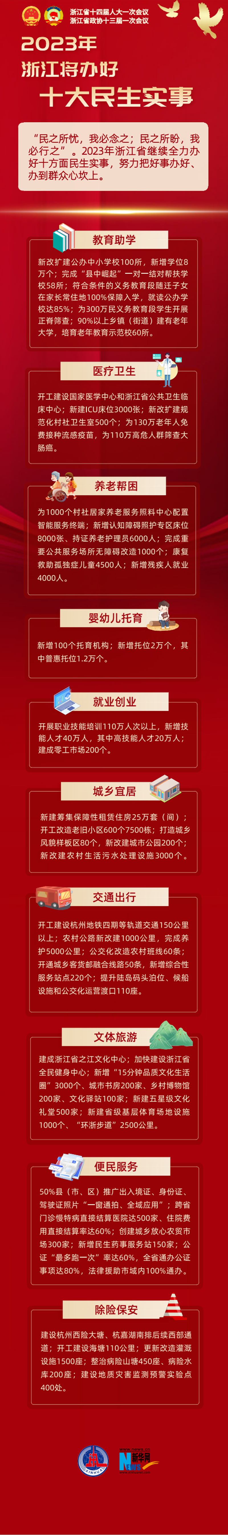 “民之所憂,我必念之;民之所盼,我必行之”。2023年浙江省繼續(xù)全力辦好十方面民生實事,努力把好事辦好、辦到群眾心坎上。