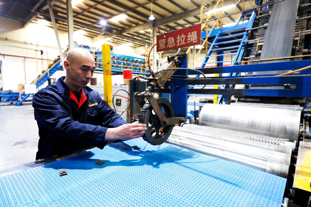 在位于三門經(jīng)濟開發(fā)區(qū)的元創(chuàng)科技股份有限公司煉膠車間里,也是一派忙碌景象:工人們熟練地操控作業(yè)臺,兩條自動化煉膠生產(chǎn)線有序運作,不一會兒一條農(nóng)用橡膠履帶就成型下?!?/p>