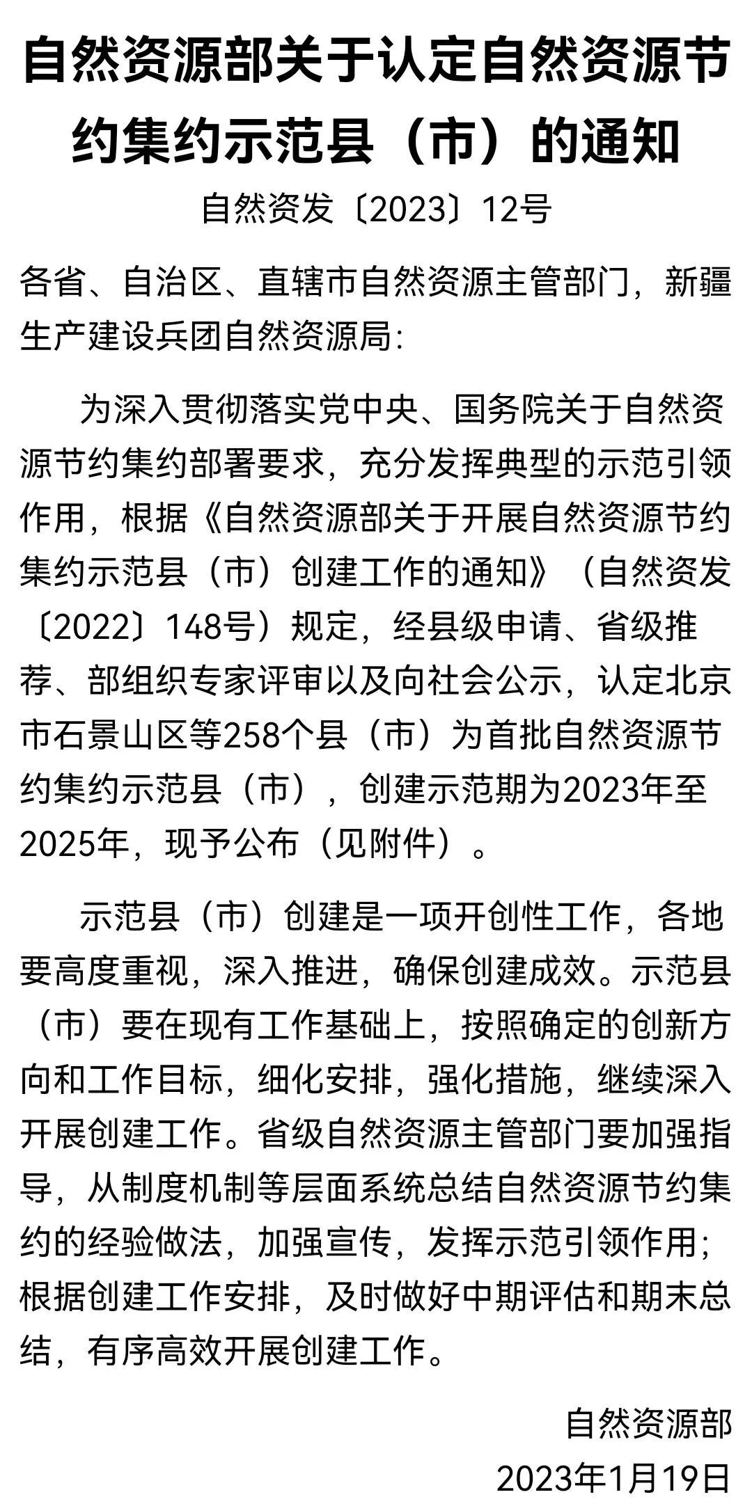 近日,自然資源部印發(fā)通知,認(rèn)定北京市石景山區(qū)等258個縣(市)為首批自然資源節(jié)約集約示范縣(市),其中,浙江14地入選。創(chuàng)建示范期為2023年至2025年。