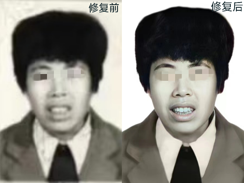 (鄒先生母親證件照修復(fù)前后)