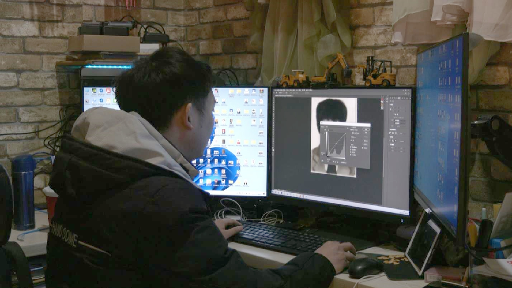 (圖為照相館老板連夜趕工修復(fù)照片)