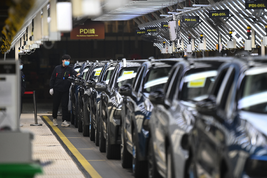 工人在領(lǐng)克汽車浙江余姚工廠總裝車間進行下線前的檢查工序(2023年1月5日 新華社記者黃宗治攝)。