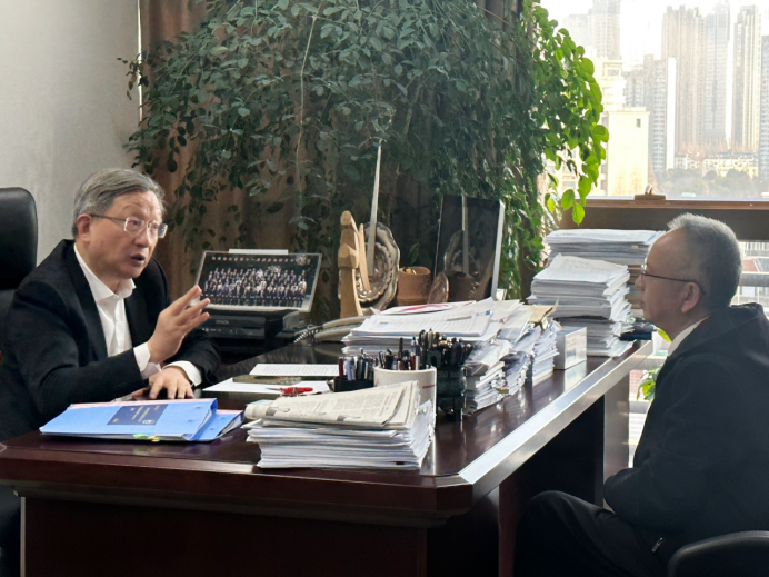 全國(guó)政協(xié)常委、浙江省政協(xié)副主席、浙江大學(xué)醫(yī)學(xué)院附屬邵逸夫醫(yī)院院長(zhǎng)蔡秀軍(左)與《小康》雜志社副社長(zhǎng)賴惠能交流。