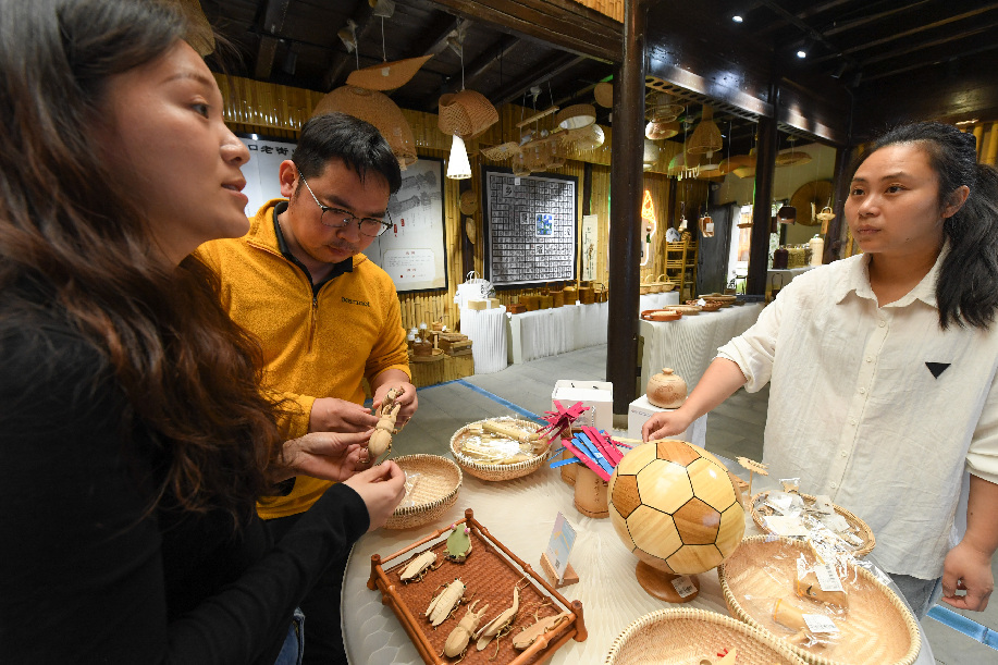 2018年,在杭州一個動畫設(shè)計公司工作的青年姜鵬和妻子鄒霞辭去大城市的工作,回到老家龍游,在古村溪口租下一棟老房子進(jìn)行創(chuàng)業(yè)。夫妻倆發(fā)揮設(shè)計專長,為家鄉(xiāng)農(nóng)產(chǎn)品代言。同時,兩人又結(jié)合當(dāng)?shù)刂褓Y源豐富的特點,以“導(dǎo)師幫帶”模式,邀請專業(yè)院校老師和設(shè)計師共同開發(fā)竹產(chǎn)品,帶動周邊20余名工匠、170多戶村民參與產(chǎn)品制作。目前,他們的團(tuán)隊共開發(fā)了2600款竹產(chǎn)品,農(nóng)特產(chǎn)年銷售額1500萬元,參與村民戶均年增收1.8萬元左右。