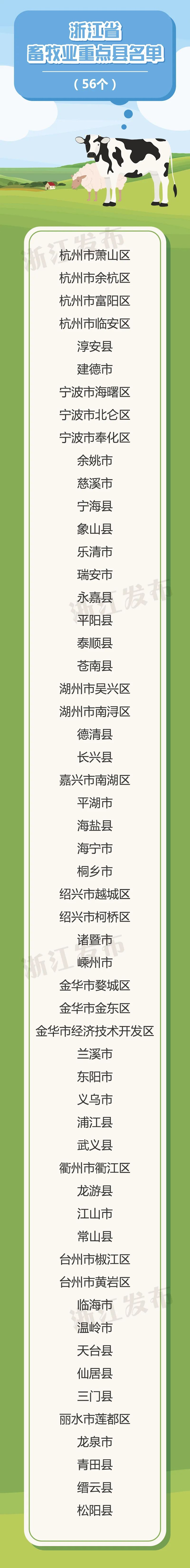 近日,浙江省農(nóng)業(yè)農(nóng)村廳印發(fā)《關(guān)于公布畜牧業(yè)重點(diǎn)縣和種植業(yè)重點(diǎn)縣名單的通知》。其中,56個(gè)縣(市、區(qū))入選畜牧業(yè)重點(diǎn)縣名單,53個(gè)縣(市、區(qū))入選種植業(yè)重點(diǎn)縣名單。