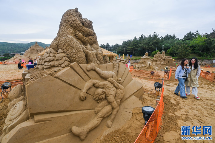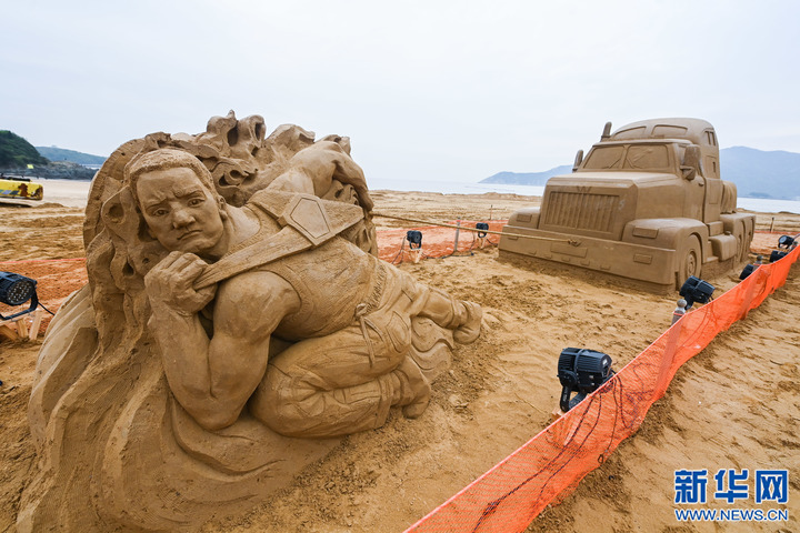 近日,第二十四屆舟山國際沙雕節(jié)在浙江省舟山市朱家尖南沙景區(qū)舉行。本屆沙雕節(jié)以“動感亞運(yùn)”為主題,展出了50多件沙雕作品,吸引游客前來參觀游玩。