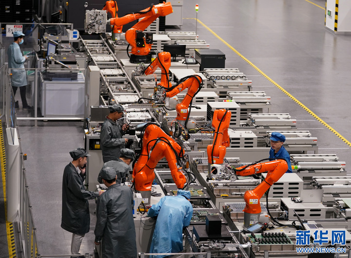 4月27日,在位于浙江杭州市蕭山區(qū)的紫光股份信息通信產(chǎn)品未來工廠,技術(shù)人員在調(diào)試生產(chǎn)線設(shè)備。新華社記者 韓傳號(hào) 攝