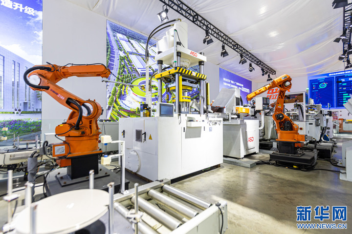 4月27日,在位于浙江溫嶺市經(jīng)濟(jì)開發(fā)區(qū)的愛仕達(dá)金屬炊具未來工廠,自動(dòng)化生產(chǎn)線可以實(shí)現(xiàn)兩分鐘內(nèi)將鋁片加工至成品鍋再到打包出庫(kù)。新華社發(fā)(徐偉杰 攝)
