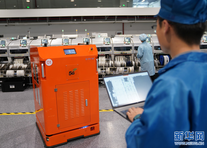 4月27日,在位于浙江杭州市蕭山區(qū)的紫光股份信息通信產(chǎn)品未來工廠,工作人員在生產(chǎn)線上補(bǔ)充物料。新華社記者 韓傳號(hào) 攝