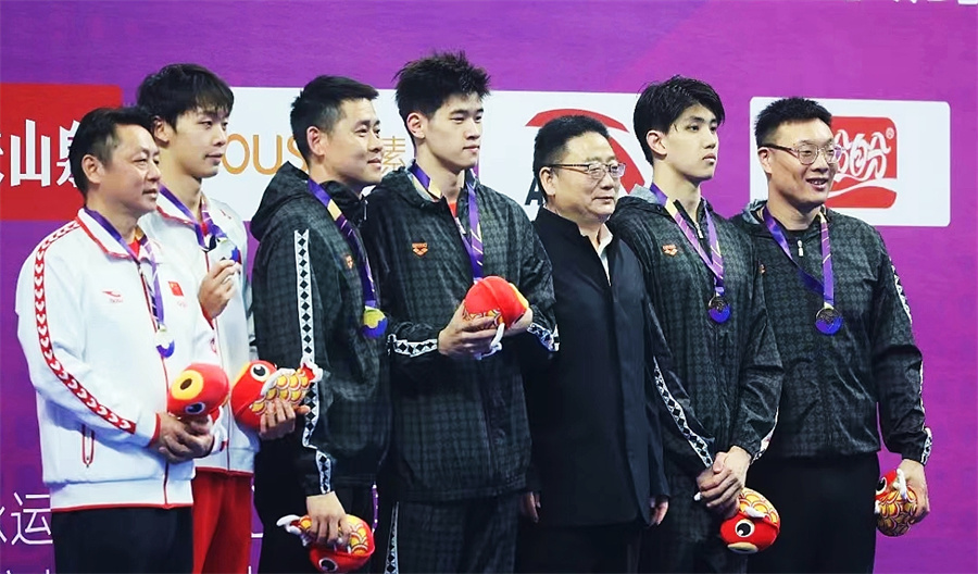 以浙江隊為例,教練員間的“換血”非常順暢,不少昔日的同組兄弟成為師徒。42歲的鄭坤良因頻繁陪同隊員登上冠軍領(lǐng)獎臺,被戲稱為“冠軍吉祥物”,他的兩大弟子潘展樂和費立緯包攬了從男子100米到1500米的五個自由泳項目金牌;當(dāng)潘展樂和費立緯同場競技400米自由泳、分別登上冠軍和季軍領(lǐng)獎臺時,他請出了在國家隊“三合一戰(zhàn)隊”抱團訓(xùn)練的汪海波教練陪同費立緯領(lǐng)獎。