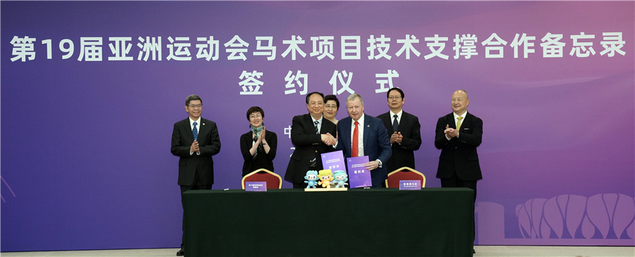 據(jù)悉,香港賽馬會作為全球頂尖的賽馬機(jī)構(gòu),在場館建設(shè)運(yùn)維、馬匹防疫檢疫、馬術(shù)運(yùn)營管理等方面具有豐富經(jīng)驗,特別是成功參與了北京奧運(yùn)會、廣州亞運(yùn)會馬術(shù)比賽的舉辦。自去年7月開始,香港賽馬會先后7次派出專家團(tuán)隊赴亞運(yùn)馬術(shù)場館進(jìn)行實(shí)地考察和業(yè)務(wù)對接,前期技術(shù)支撐工作已進(jìn)入實(shí)質(zhì)性階段,本次簽約將推動各業(yè)務(wù)領(lǐng)域合作持續(xù)深化、全面提速。