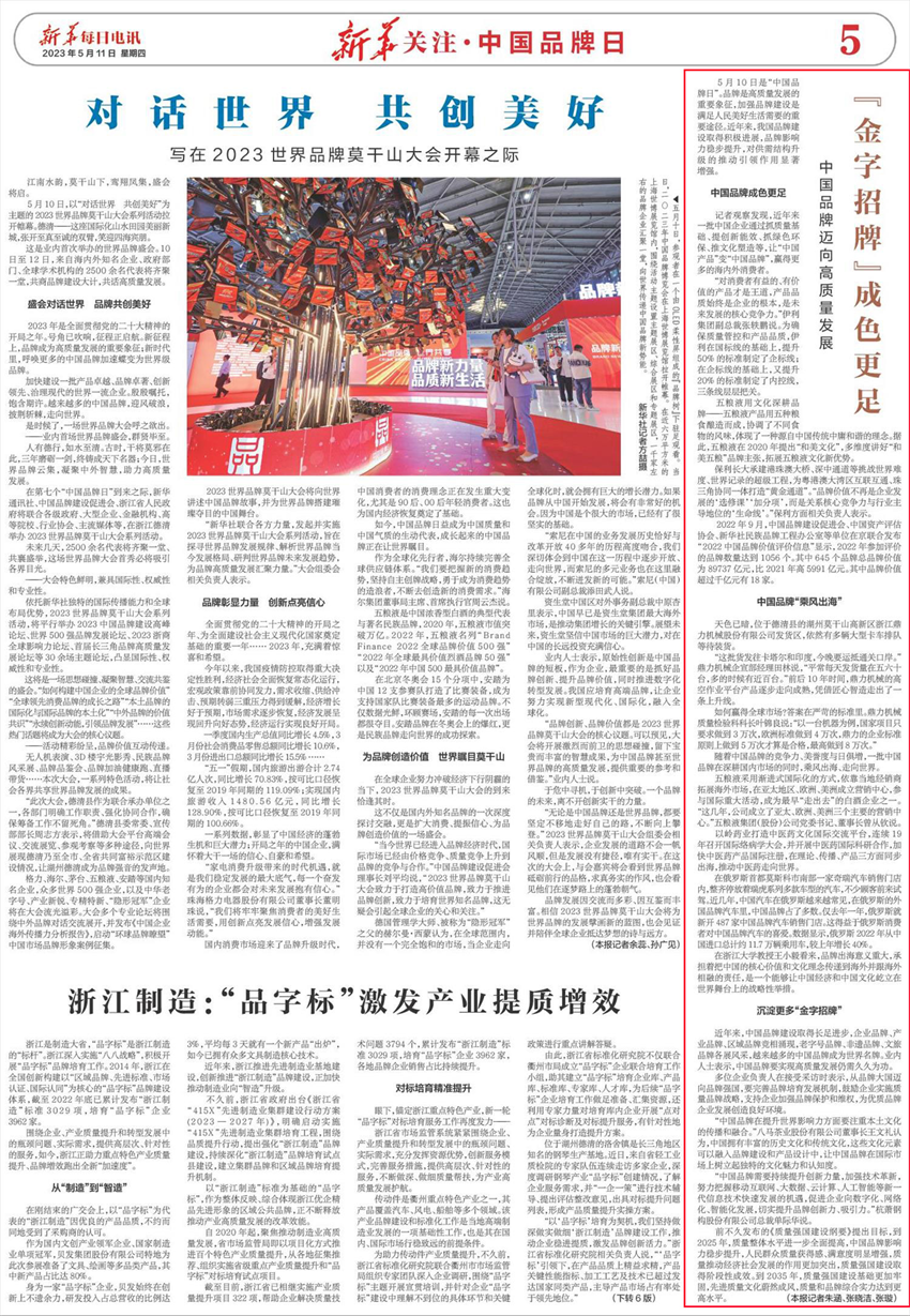 5月10日是“中國品牌日”。品牌是高質(zhì)量發(fā)展的重要象征,加強(qiáng)品牌建設(shè)是滿足人民美好生活需要的重要途徑。近年來,我國品牌建設(shè)取得積極進(jìn)展,品牌影響力穩(wěn)步提升,對供需結(jié)構(gòu)升級的推動引領(lǐng)作用顯著增強(qiáng)。