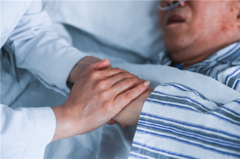 5月11日,浙江醫(yī)院安寧療護護士握著病人的手。新華社記者 徐昱 攝