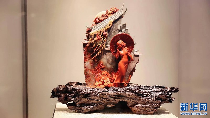 非物質(zhì)文化遺產(chǎn)玉石雕刻展精品館。新華網(wǎng)發(fā)