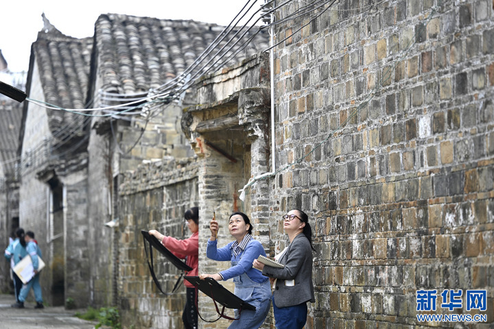在廣西柳州市柳城縣古砦仫佬族鄉(xiāng)的傳統(tǒng)村落大戶村灘頭屯,繪畫愛好者在民居旁寫生(2023年4月10日攝)。新華社發(fā)(黎寒池 攝)