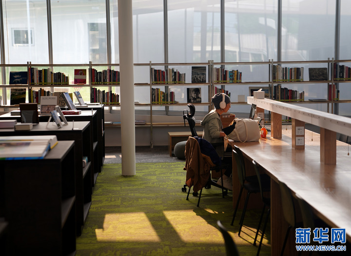 6月1日,一名“數(shù)字游民”在位于溪龍鄉(xiāng)的安吉縣創(chuàng)意設(shè)計(jì)中心圖書(shū)館內(nèi)。新華社記者 韓傳號(hào) 攝