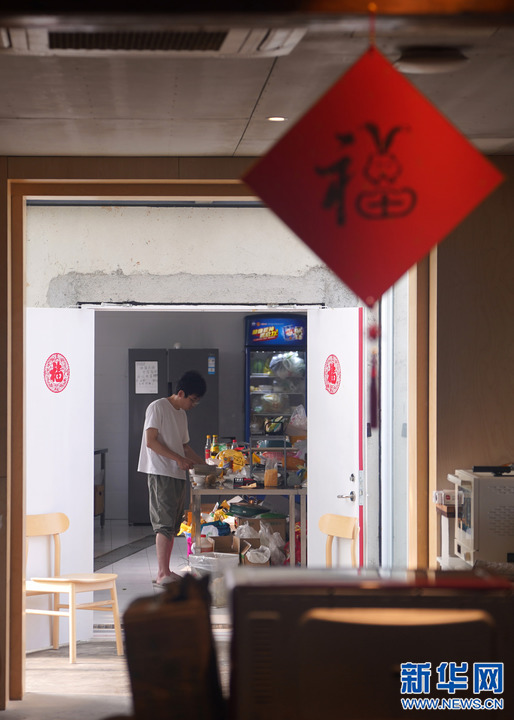 6月1日,“數(shù)字游民”艾因在共享廚房?jī)?nèi)做飯。新華社記者 韓傳號(hào) 攝