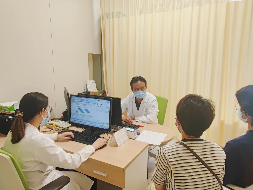 徐方忠(左二)接診前來就診咨詢的青少年患者和家長(zhǎng)。(受訪者供圖)