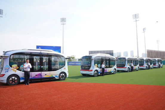 5輛融合亞運(yùn)元素的自動(dòng)駕駛小巴在蔡江路、大越路、群賢路、鏡水路上行駛,車輛采用L4級(jí)無人駕駛技術(shù),運(yùn)用AI人工智能和5G網(wǎng)絡(luò),配合多傳感器協(xié)同,實(shí)現(xiàn)云監(jiān)控、云智能、云安全、云營運(yùn)“AI+5G+云服務(wù)”,智能化應(yīng)對(duì)車輛并線、超車等各類城市場(chǎng)景。亞運(yùn)會(huì)期間,自動(dòng)駕駛小巴還將作為特色交通工具,“精準(zhǔn)對(duì)接”大會(huì)參賽選手、觀賽市民等出行需求。