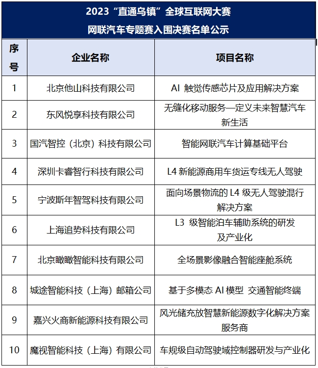 2023“直通乌镇”全球互联网大赛网联汽车专题赛决赛将于11月8日开赛。经过前期网联汽车专题赛复赛的激烈角逐,10个项目将齐聚决赛现场,带来一场别开生面的大赛路演。