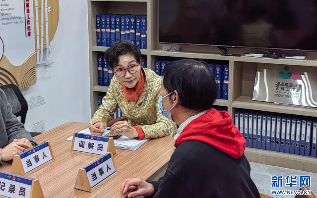 潘美华在调解室为当事人双方调解矛盾。新华网发