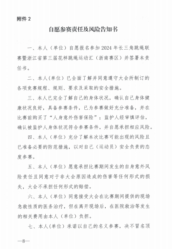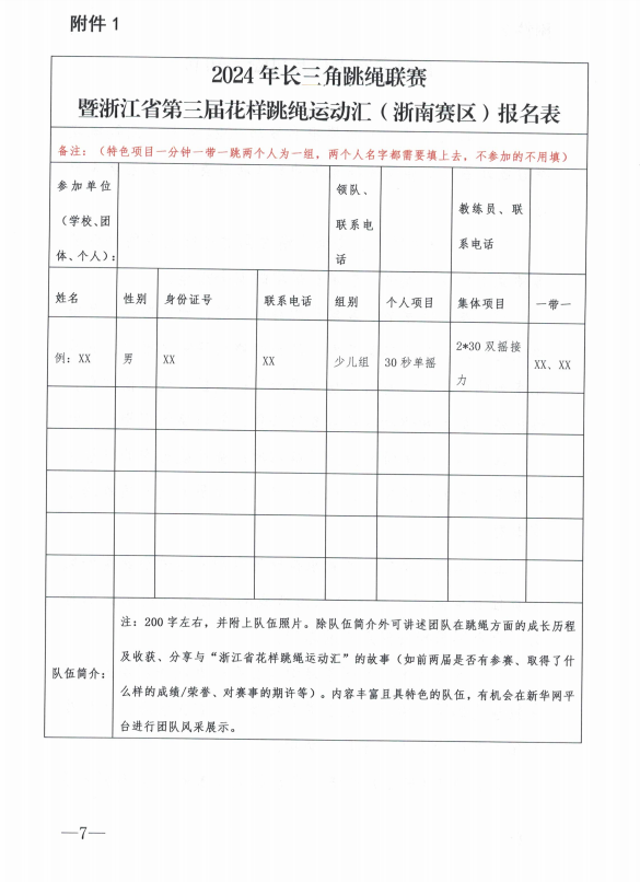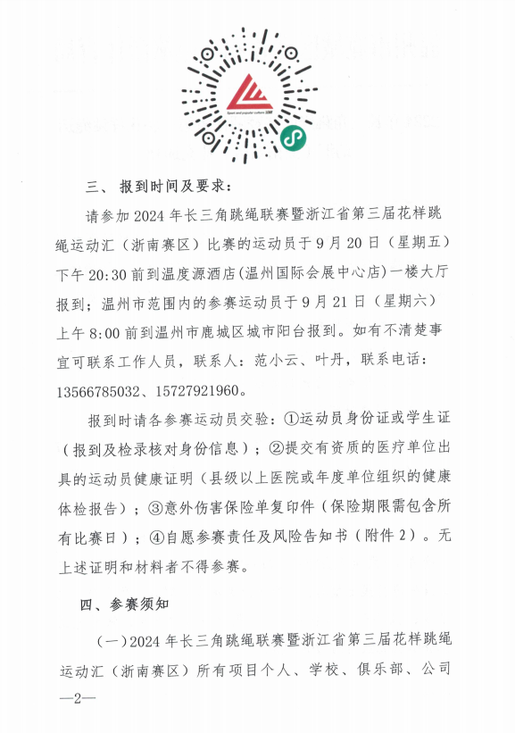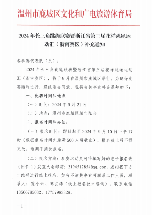 2024年长三角跳绳联赛暨浙江省第三届花样跳绳运动汇(浙南赛区)补充通知
