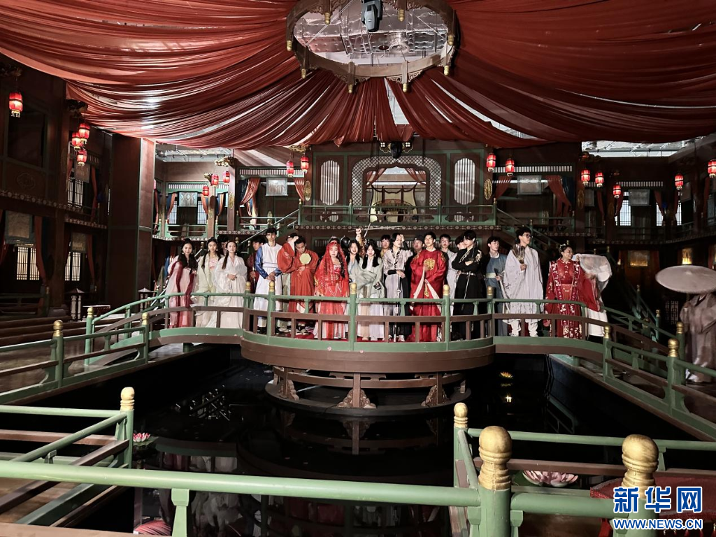 胤秀文化(温州)影视城位于瓯海仙岩街道,是温州首个特色文化影视城,场景分为民国街区、唐宋街区、现代街区以及赛博朋克等主题影视街区。“我们在满足剧组拍摄需求的同时,还准备了丰富的夜间剧情表演项目,开设VR体验、主题迷宫、角色扮演和cosplay等游客互动活动,为游客提供沉浸式的影视体验。”影视城相关负责人介绍,自2024年7月份开园以来,该影视城已接纳游客超10万人次。