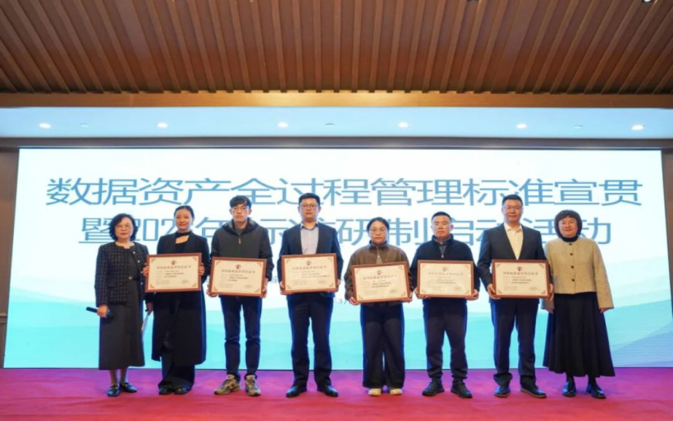 本次大会发布了浙江省数据资产全过程管理“1+1+3”标准体系,即《数据资产确认工作指南》《资产管理 数据资产登记导则》《数据资产财务登记业务指南》《数据资产产权登记业务指南》《数据资产交易登记业务指南》,并启动《数据资产管理体系要求》《数据资产全过程管理能力评估》两项团体标准的研制工作。会上,领导嘉宾共同为《资产管理 数据资产登记导则》等4项团体标准起草单位代表颁发证书。